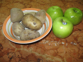 Aparte,  pelar las manzanas,  cortarlas en cuartos y quitarles el centro y las semillas. Cocinar en una cacerola con apenas agua que las cubra. Una vez que las manzanas estén blandas, colarlas y hacer un puré.