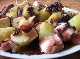 las papas las cocinaba junto con el pulpo. O sea, en la misma cacerola que el